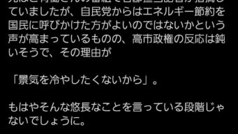 嫌儲 【高市天才】自民党、経済界「頼む、石油の節約を促そう」高市早苗「そんなことしたら景気が冷えるでしょ!」