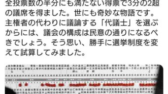 なんG 毎日新聞「完全比例代表制度なら自民党が大敗してた」