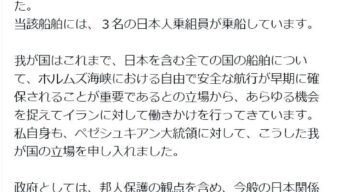 嫌儲 外務省、日本関係船舶のホルムズ海峡通過の公式プレス発表。これが交渉した結果なのか