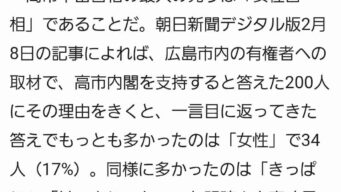 嫌儲 「高市早苗さんのいいところ」1位「女」2位「きっぱりはっきり」3位「やってくれそう」