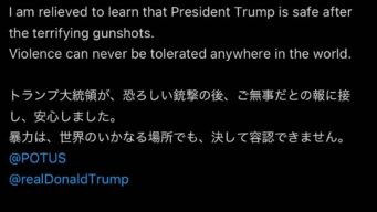 嫌儲 高市早苗「ドナルド無事で良かった!😢暴力は、世界のいかなる場所でも、決して容認できません😡」