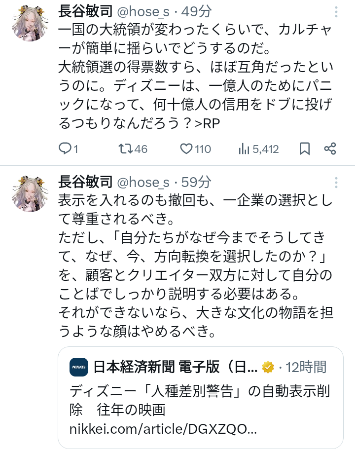 SF作家さん、ディズニーが呆気なくポリコレから掌返ししたのを見てずんだもんになってしまう
