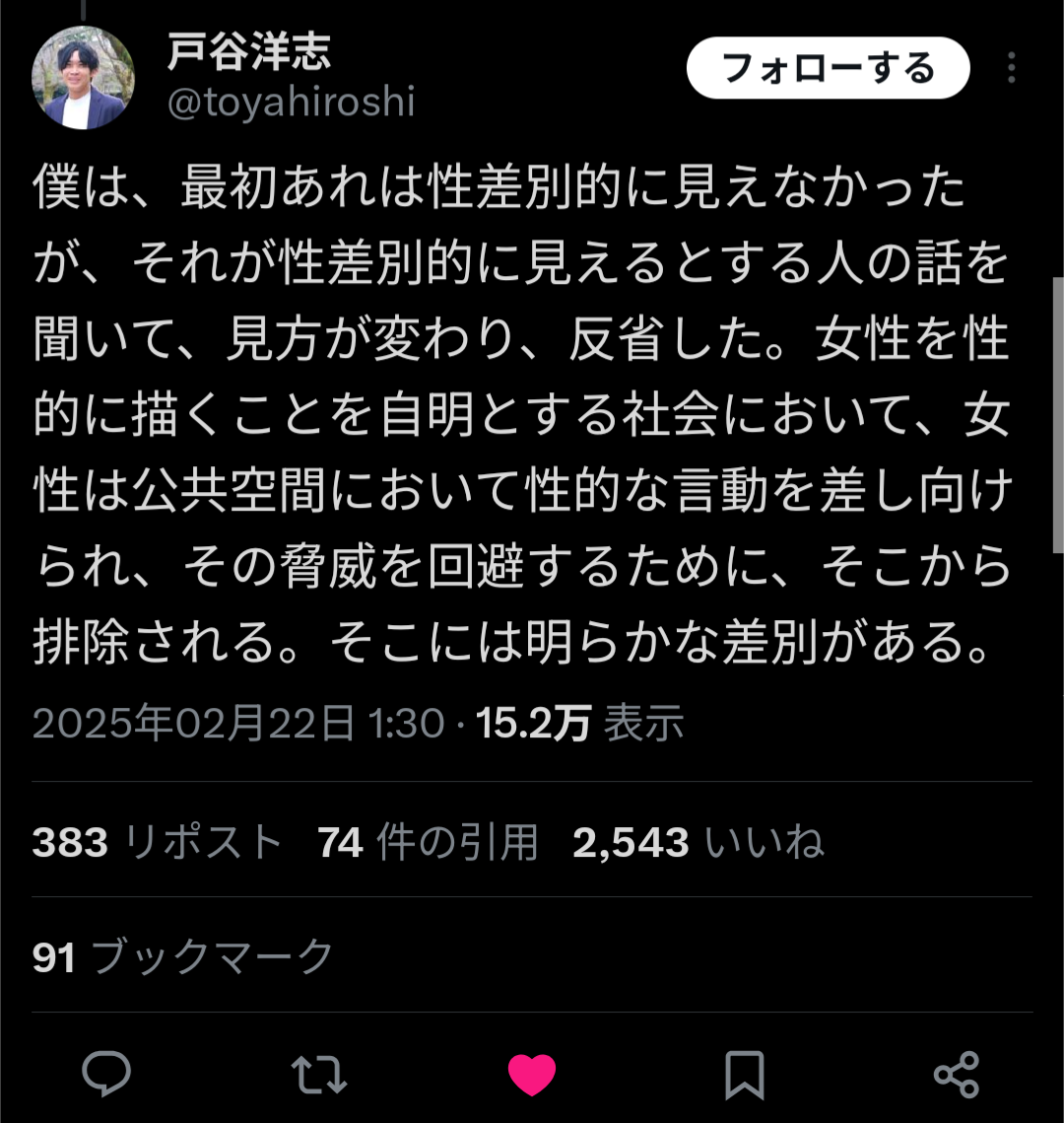 性的だとは思うが 性差別だとは思わない。あれの何が 性差別なんだ?