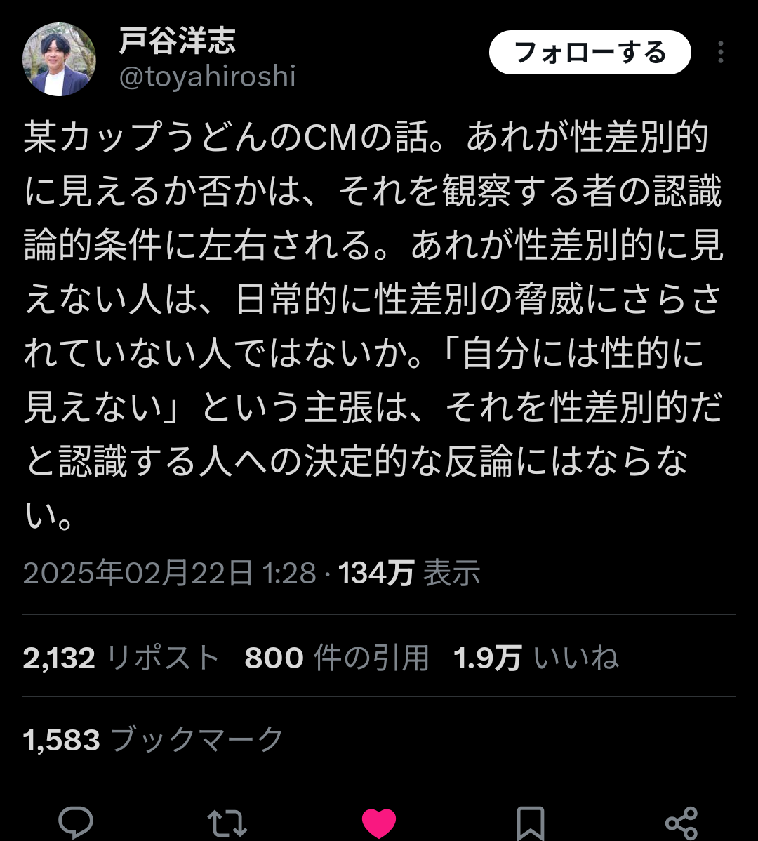 立命館大学准教授「東洋水産の赤いきつねのCMはれっきとした性差別です。許されることはありません」と激怒とまらず