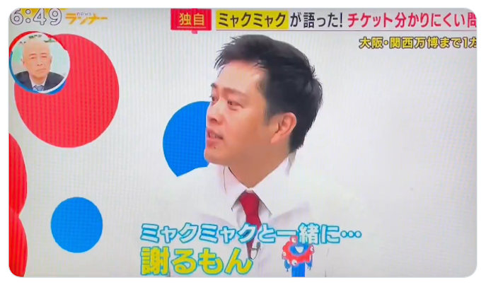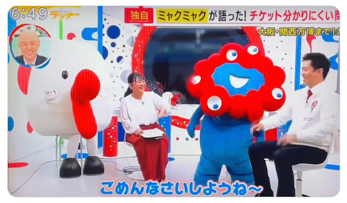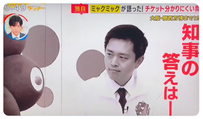 大阪府 吉村洋文知事:それではミャクミャク、許されへんかもしれんねえー。いやいや知事、ミャクミャクとふざけてないでまじめに答えを。
