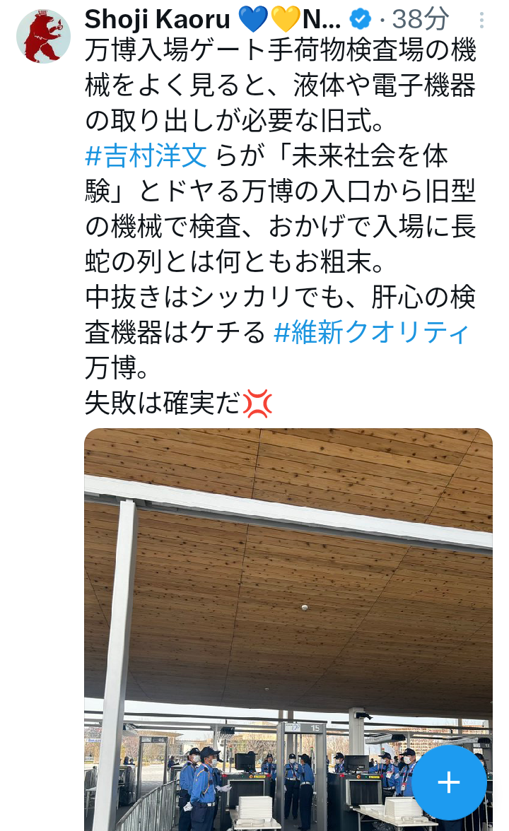【画像】大阪万博、テストランなのに手荷物検査で1時間待ちwww手荷物検査のやり方もまるで空港・・・