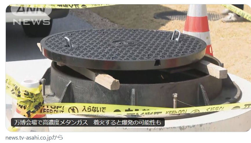 万博協会によると、6日午後4時半ごろ、ピットを保護するマンホール内で、引火すれば爆発を起こしうる最低濃度(5vol%)を超えるメタンガスを検知した。消防などが周囲20メートル四方の範囲で立ち入りを規制し、マンホールのふたを開けて換気したところ、30分後に、労働安全衛生規則で定める基準値(1・5vol%)を下回った。6日朝に測定した時には検知されなかった。