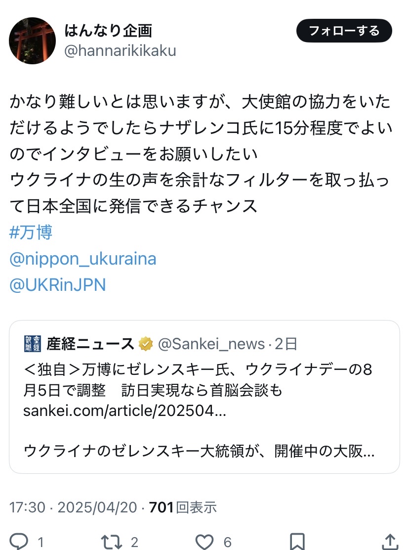 真面目な話ウクライナ本国での知名度が下手に上がると向こうのネオナチみたいな連中に狙われるぞマジで