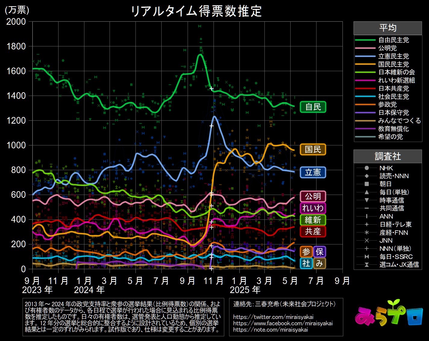 三春充希(はる)⭐未来社会プロジェクト @miraisyakai5月12日現在の政党支持率の平均