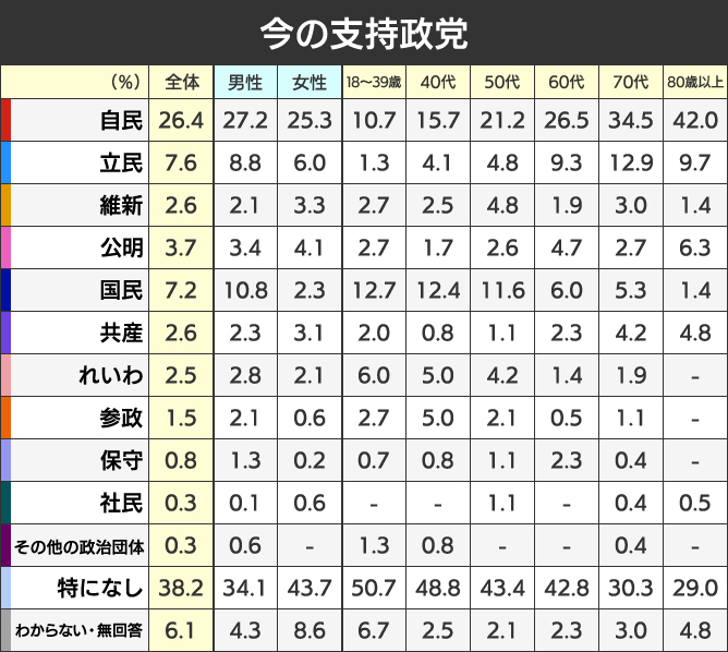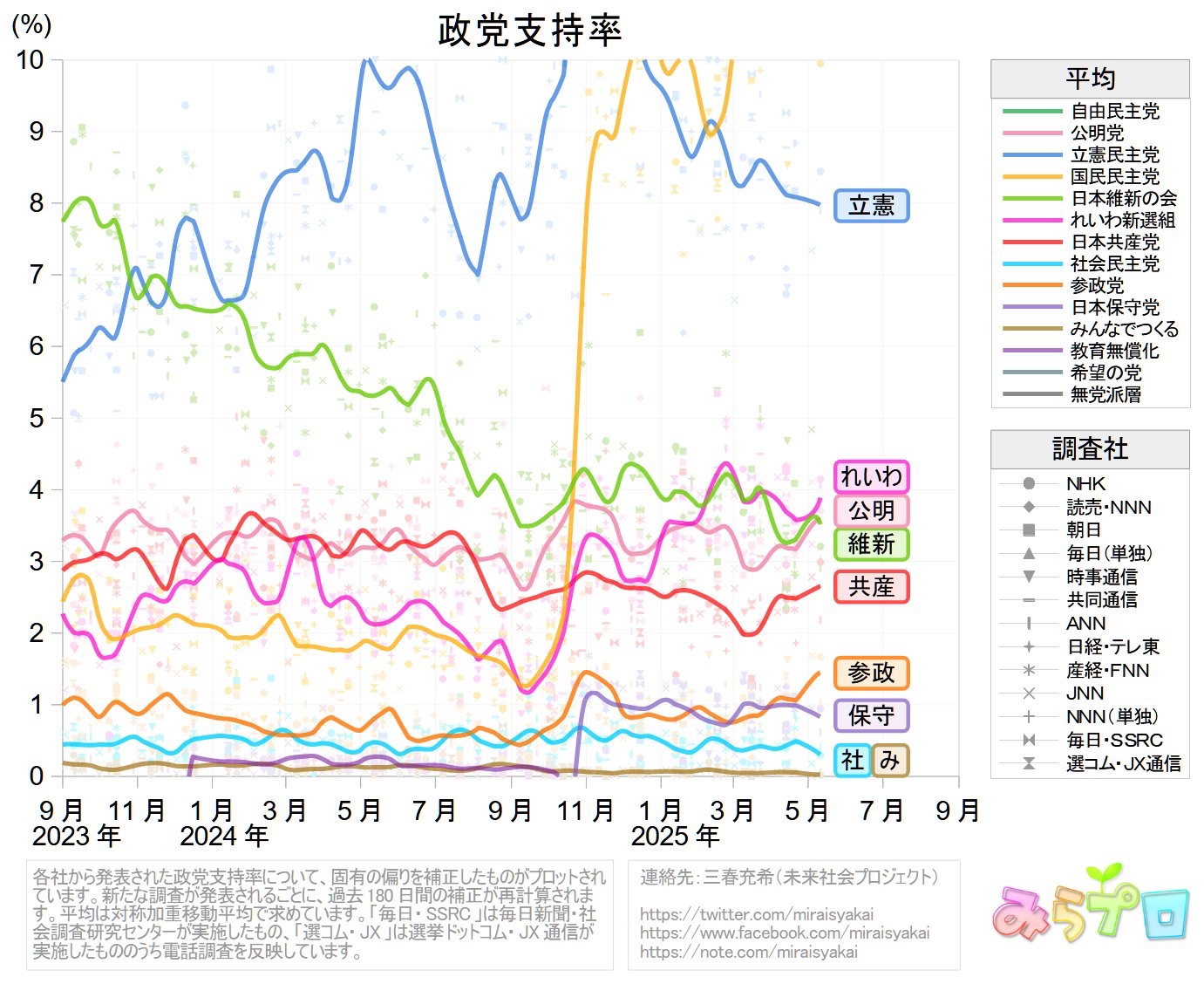 1年半ぐらい前は維新がその位置だったんで、たぶん民民もあっさり落ちると思う