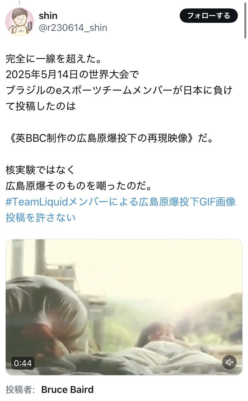ブラジルeスポーツチーム 日本人チームに負けて発狂、原爆画像を投稿→炎上