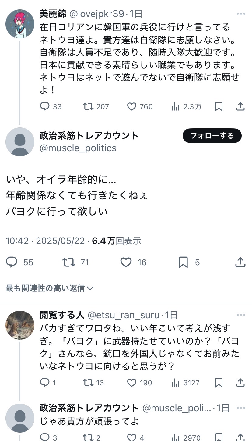 最前線に出て盾になれバカウヨ - 11 : 2025/05/23(金) 16:09:01.32 ID:N1ma1/w5d