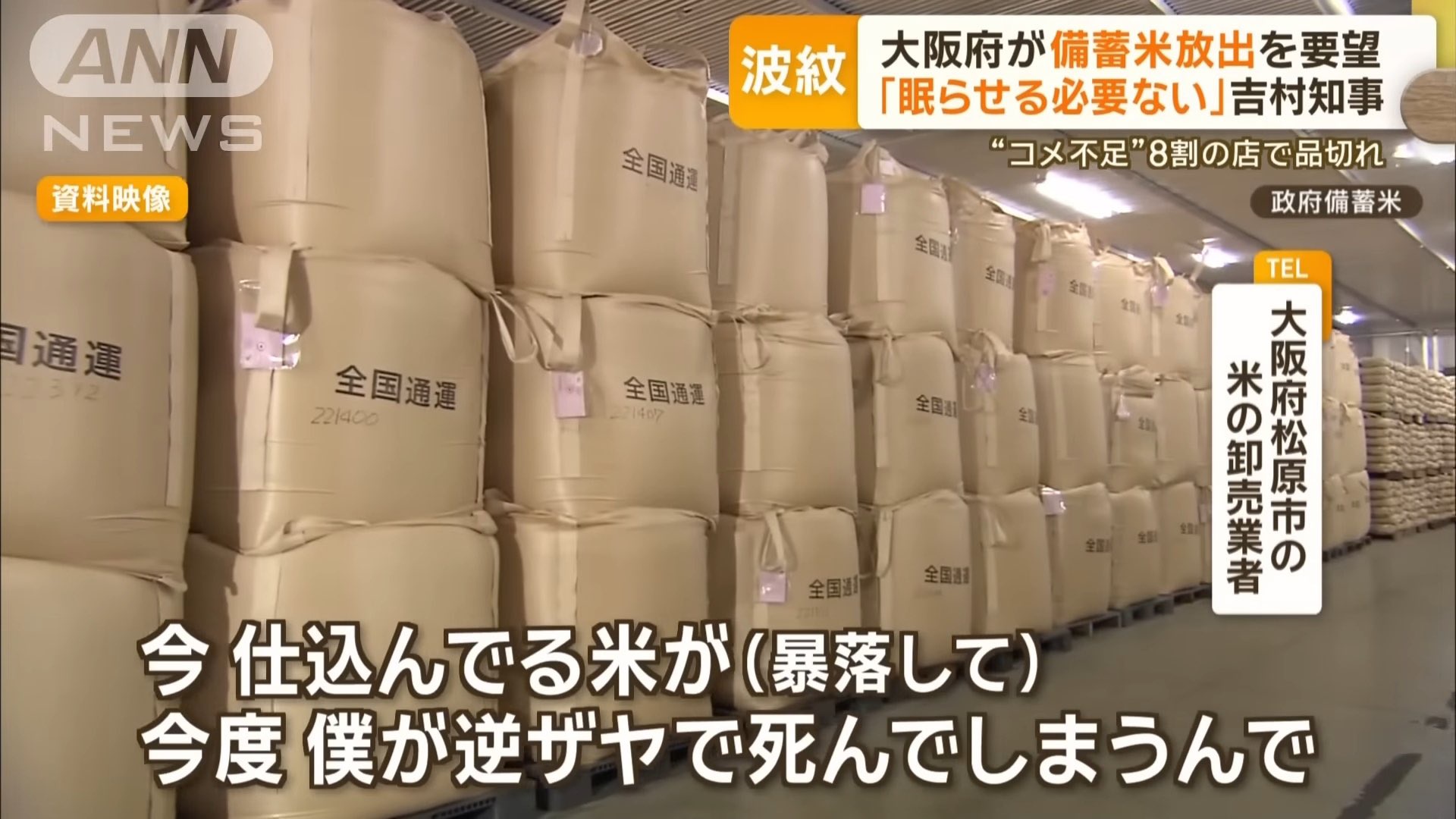 米卸売業「政府が備蓄米放出したら、米の価格が暴落して我々が死んでしまう」