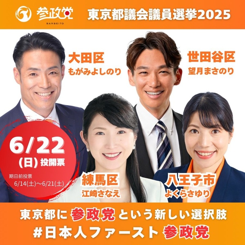 【日本をなめるな】🟧参政党、世田谷・太田・練馬・八王子で議席獲得へ!!
