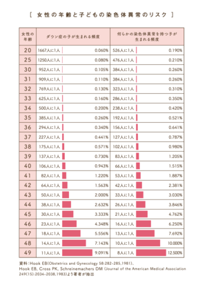https://medical-tribune.co.jp/kenko100/articles/?blogid=34&entryid=52780945歳の高齢出産では25歳の約40倍の確率でダウン症