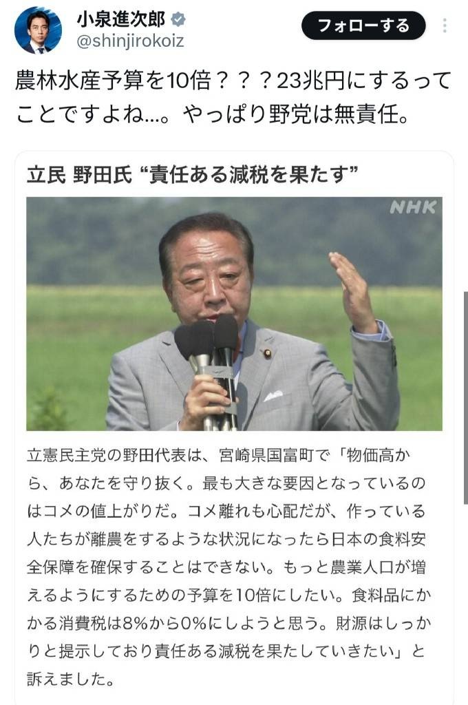 読み間違いの確認も裏取りもせずにポストする進次郎が一番おかしい
