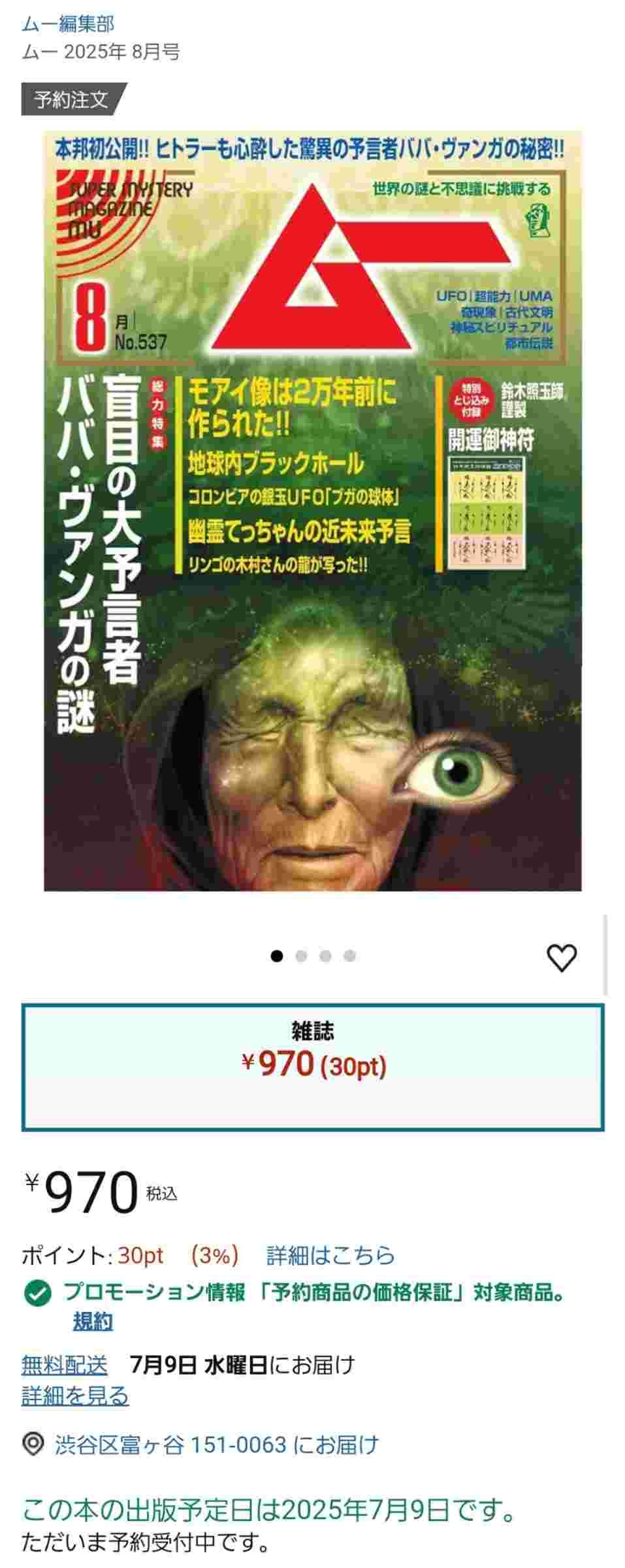月刊ムー何事もなかったかのように通常運転「ヒトラーも心酔した驚異の予言者ババ・ヴァンガの秘密!」「モアイ像は2万年前作られた!」