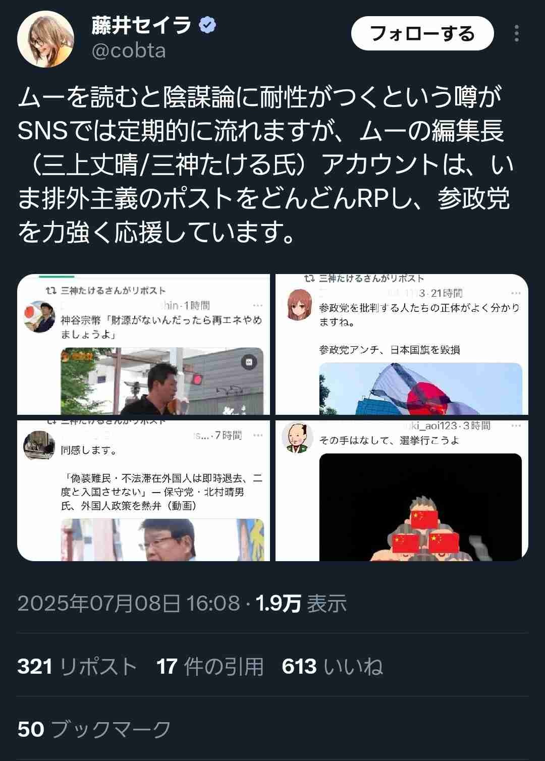 こういう奴らって外から見たら同じに見えても意外と全然違かったりするけど参政党とムーは共鳴するんだな