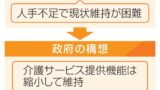 建物は既存の介護施設の転用や一部活用で賄う。子どもの居場所など、地域住民が集う場としても期待する。整備事業の主体は自治体で、政府は地方創生の交付金で改修費を財政支援する。
