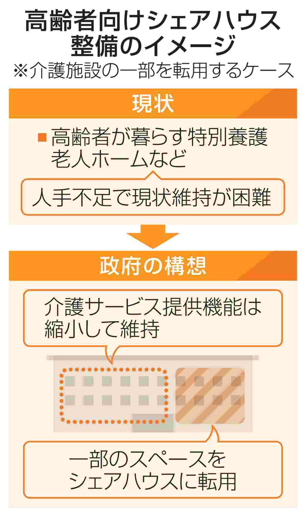 政府、高齢者シェアハウス整備へ 介護も提供、3年間で100カ所(共同通信) - Yahoo!ニュース