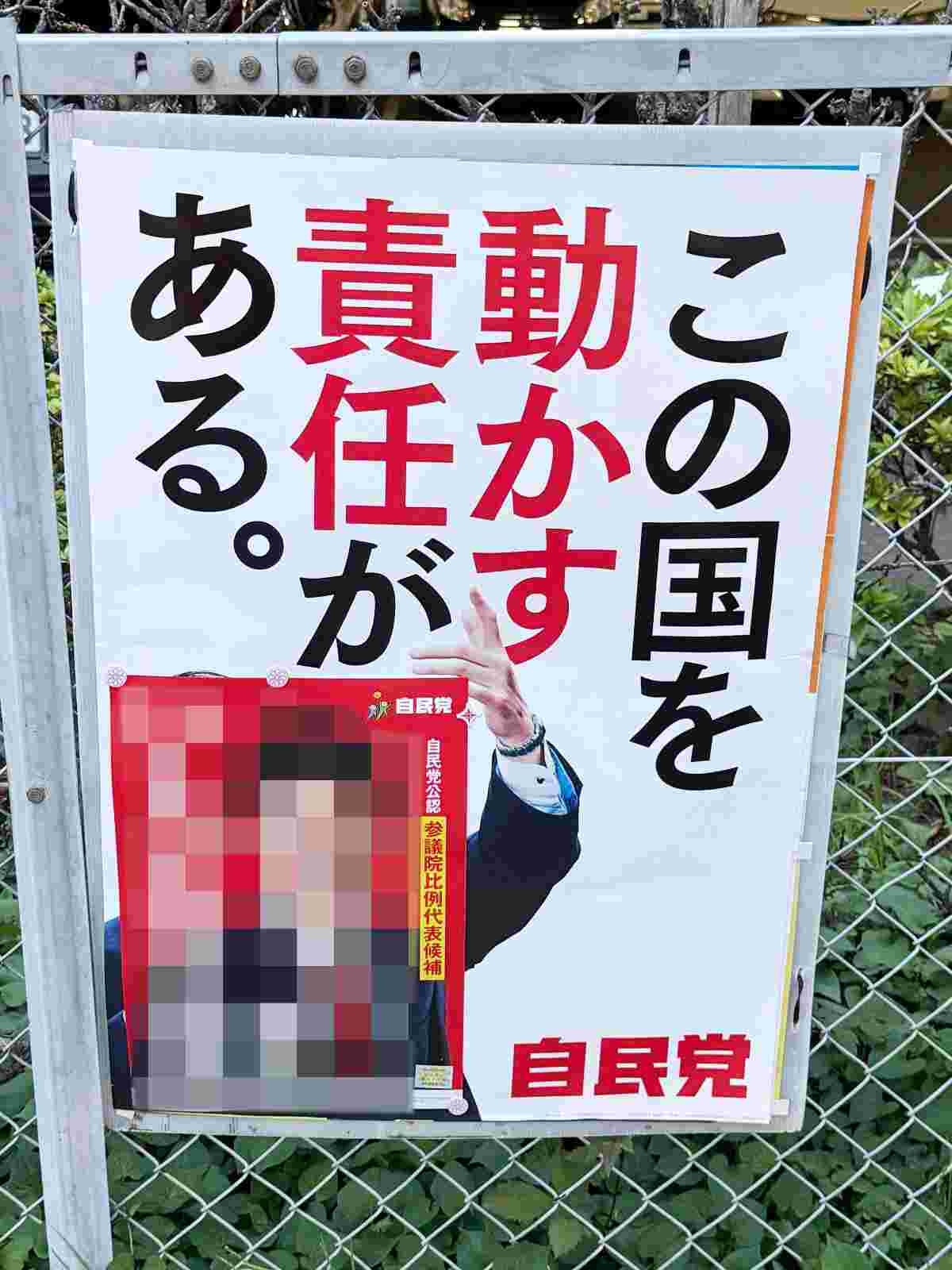 https://news.yahoo.co.jp/articles/a1885732baf9d149aafffe819d83d11f44892914石破茂氏の顔写真が、候補者のビラで隠された自民党のポスター=5日、川崎市(竹之内秀介撮影、画像を一部加工しています)
