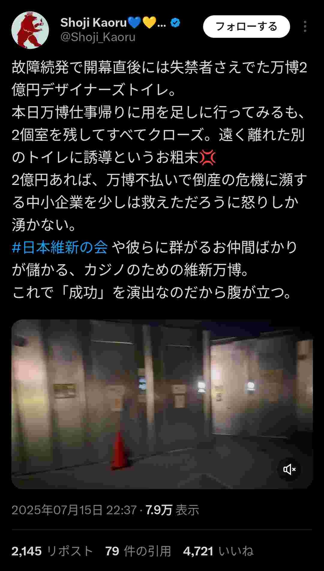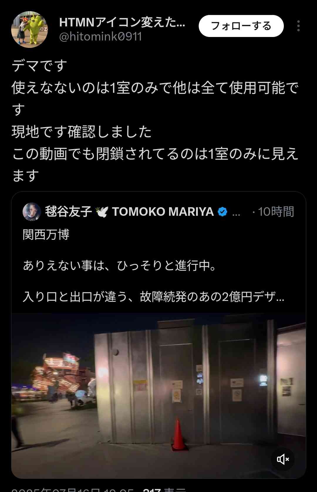 大体万博会場内トイレ死ぬほどあるからどれかクローズしても全く困らん