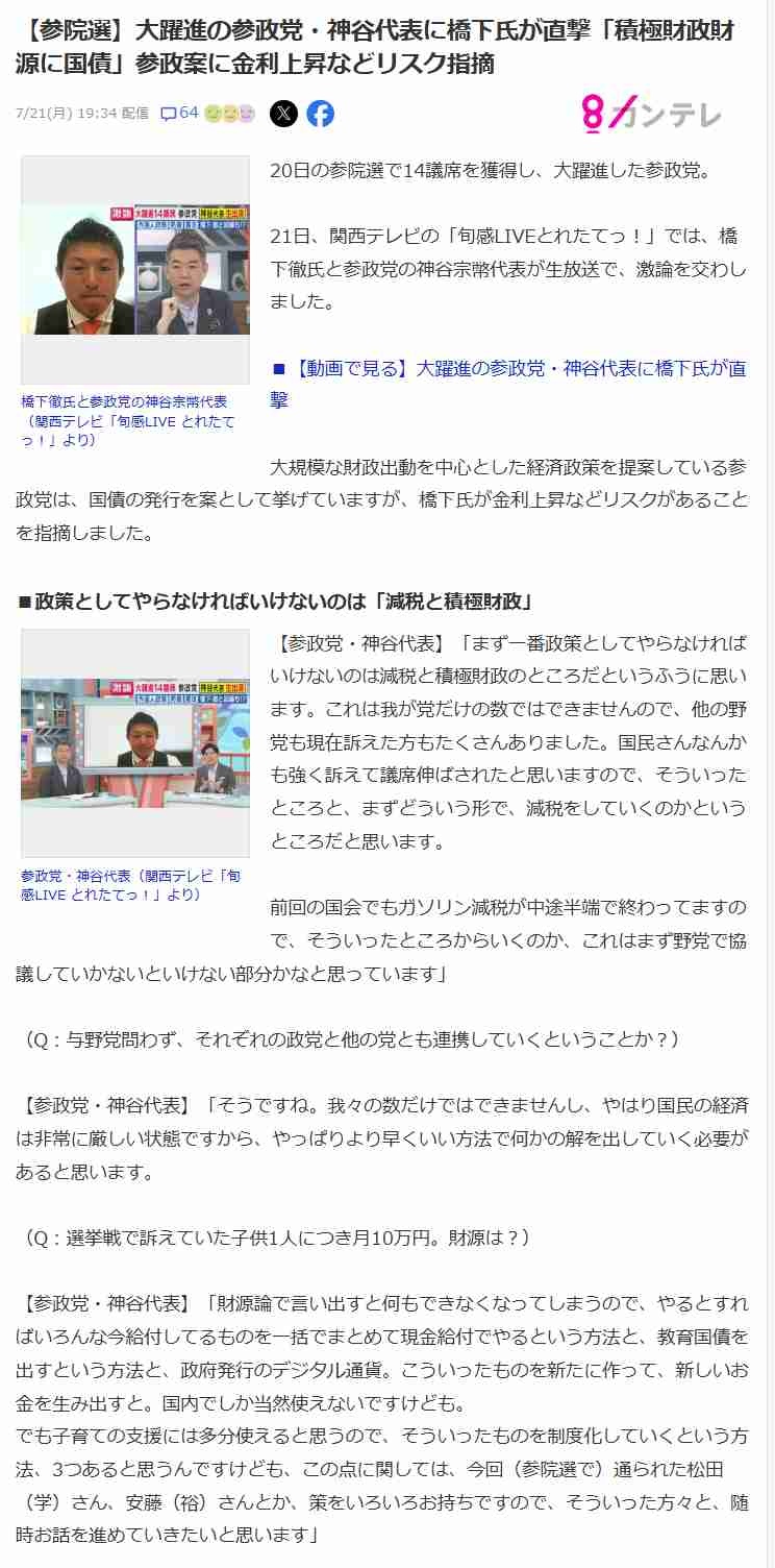 参政って財政はれいわ経済学にフリーライドしただけだよな