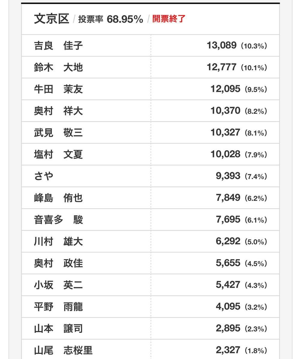 >「男性が票を投じた人のトップは参政のさや氏(13%)。女性の最多は、共産の吉良佳子氏(11%)だった」