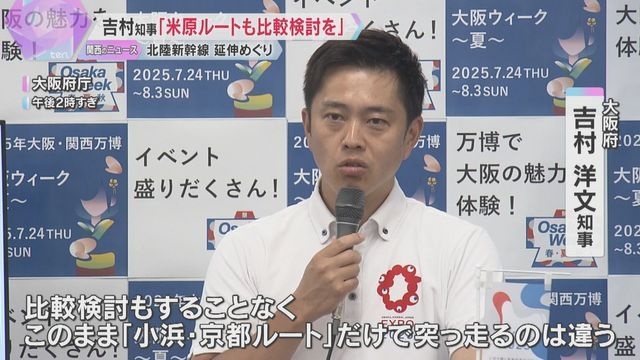 北陸新幹線の延伸をめぐり大阪府の吉村洋文知事は22日、現在の「小浜・京都ルート」ありきではなく「米原ルート」も再検討すべきとの考えを示しました。