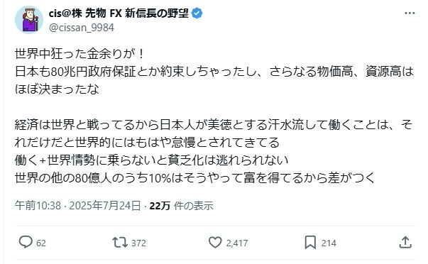 エコーチェンバーかかってるんだと思うけど関税合意の爆上げも拾えてないし言い訳が増えた