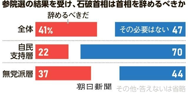 石破首相は「辞めるべきだ」41%、「必要はない」47% 朝日世論