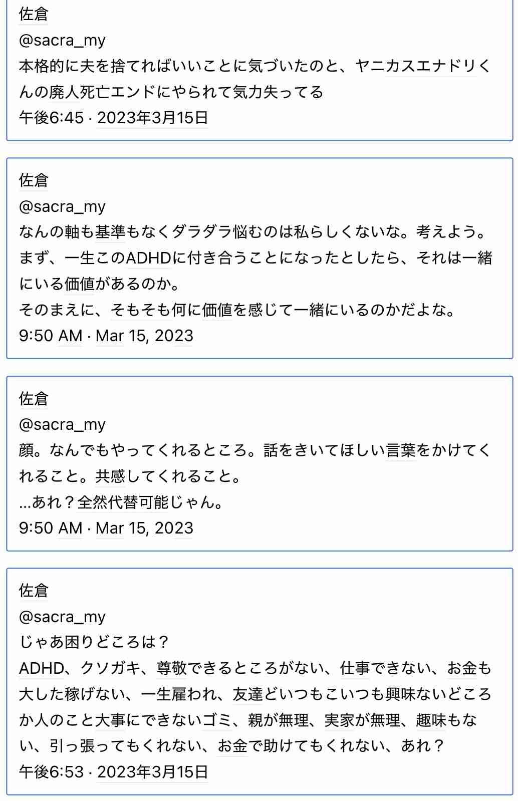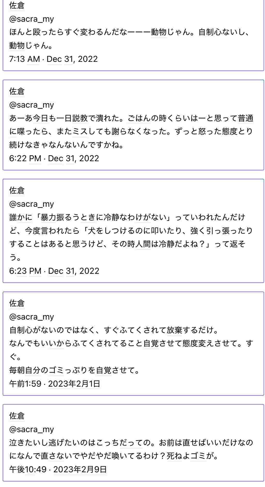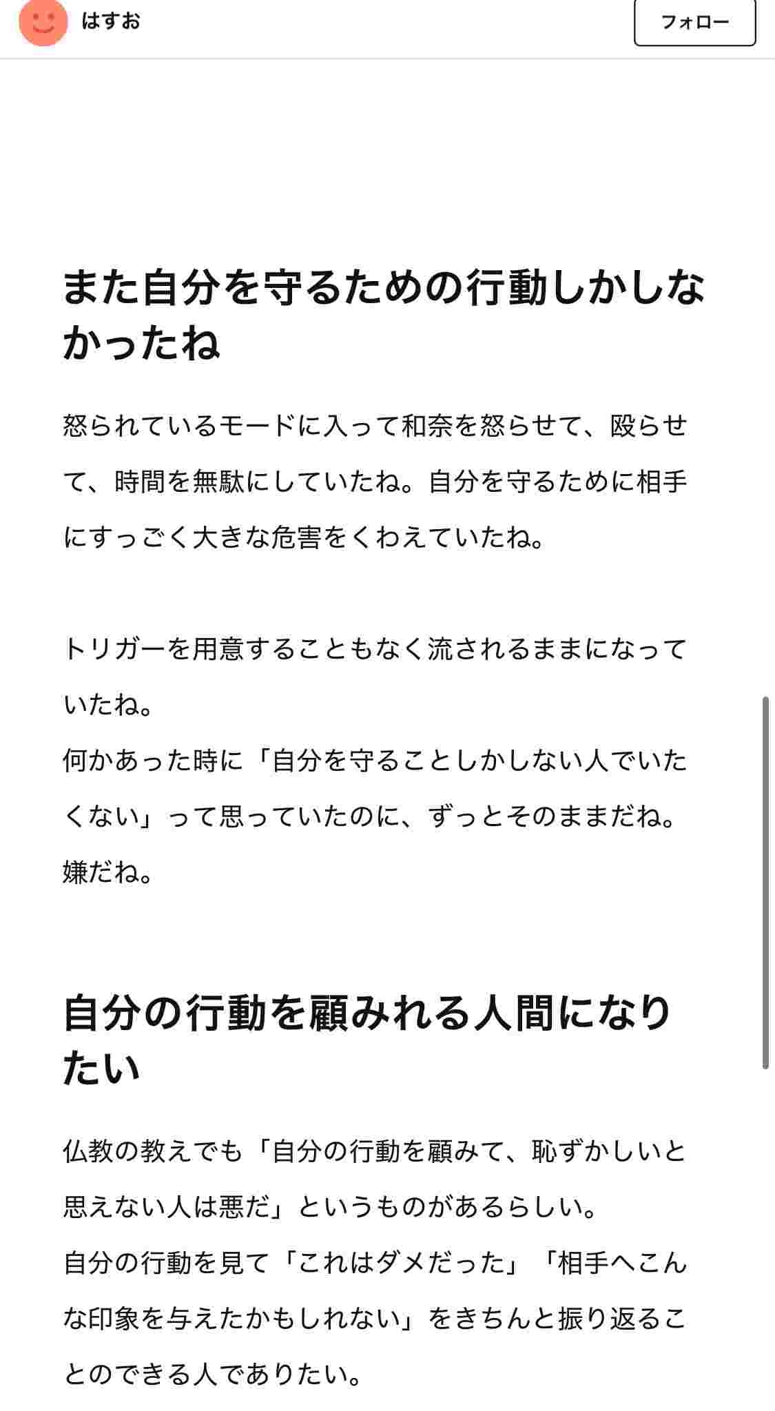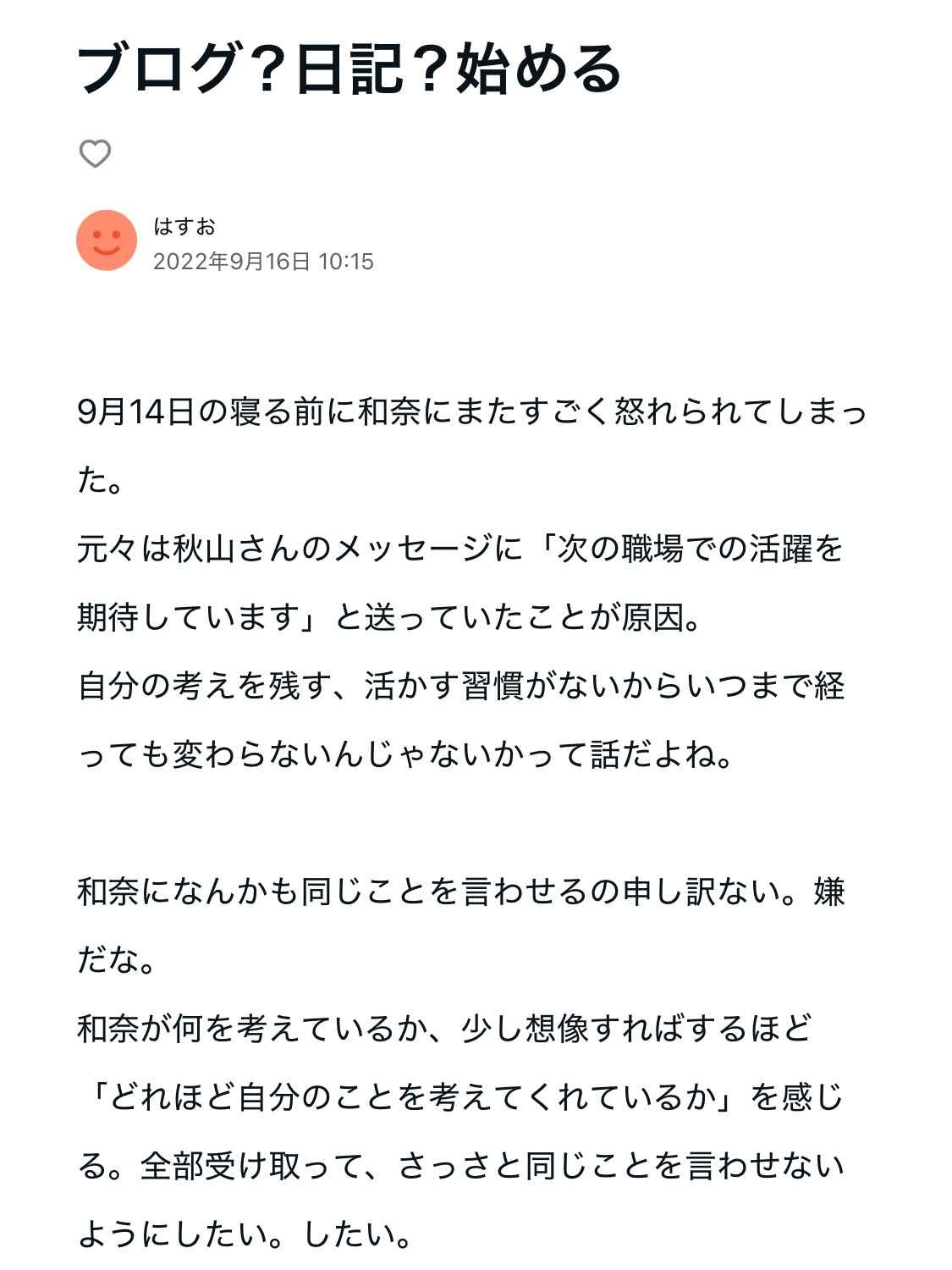 ・旦那は「殴らせてしまった」と書くなど、たまに妻に手を上げられていたが自分が悪いと責めるタイプだった