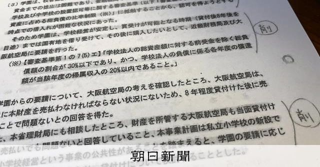 A 学園は2016年、地中にあるとされるごみの撤去費を根拠に8億2千万円を値引きしてもらい、1億3400万円で土地を購入した。この大幅値引きは学園の要望に応えたもので、異例の対応だった。