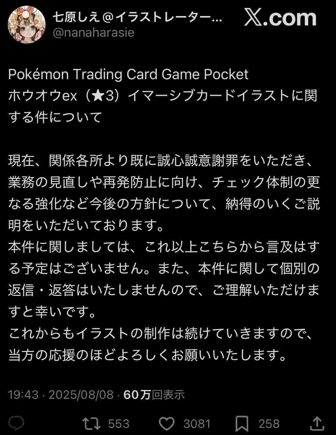 絵師の公式もどっちもパクリ元に謝罪ないのクズすぎて笑う