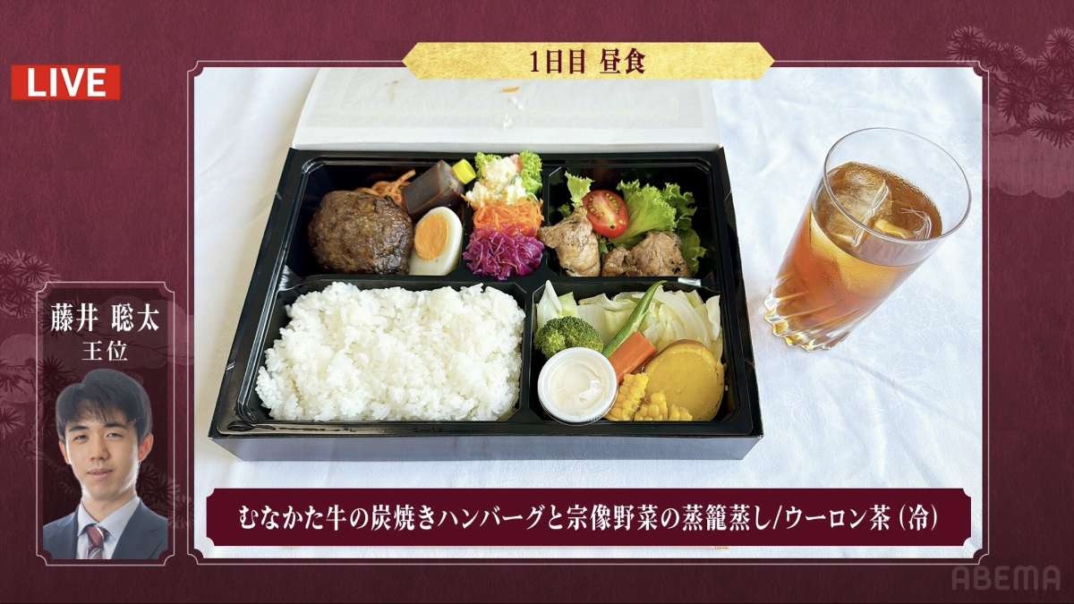 藤井聡太王位の昼食は「むなかた牛の炭焼きハンバーグと宗像野菜の蒸籠蒸し」。