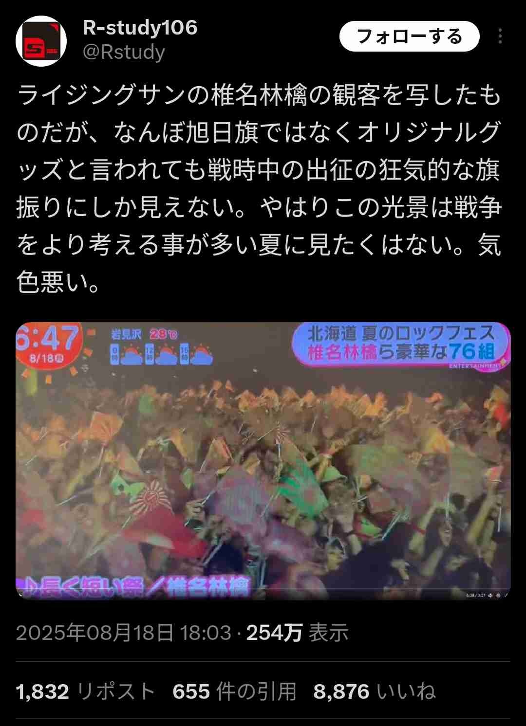 ロックフェスで朝日新聞の旗振ったら発狂するのお前じゃん