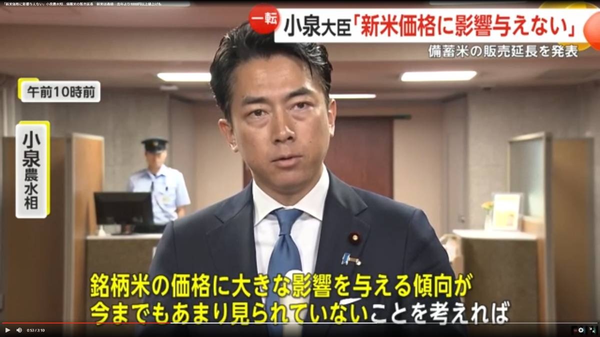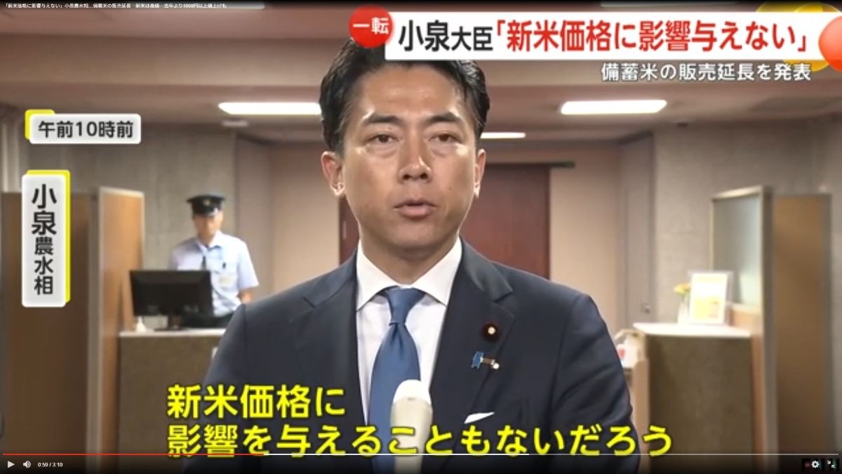 「新米価格に影響与えない」小泉農水相…備蓄米の販売延長 新米は高値 去年より1000円以上値上げも