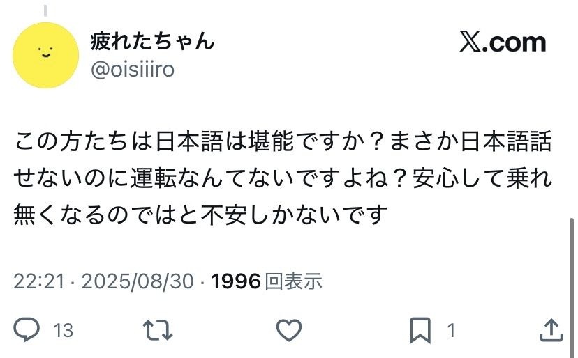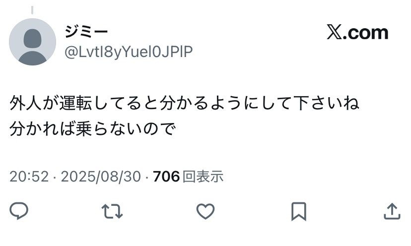 俺インド人が運転手でもいいけどこいつらみたいなネトウヨが運転手だったら絶対乗りたくないから表示してほしい