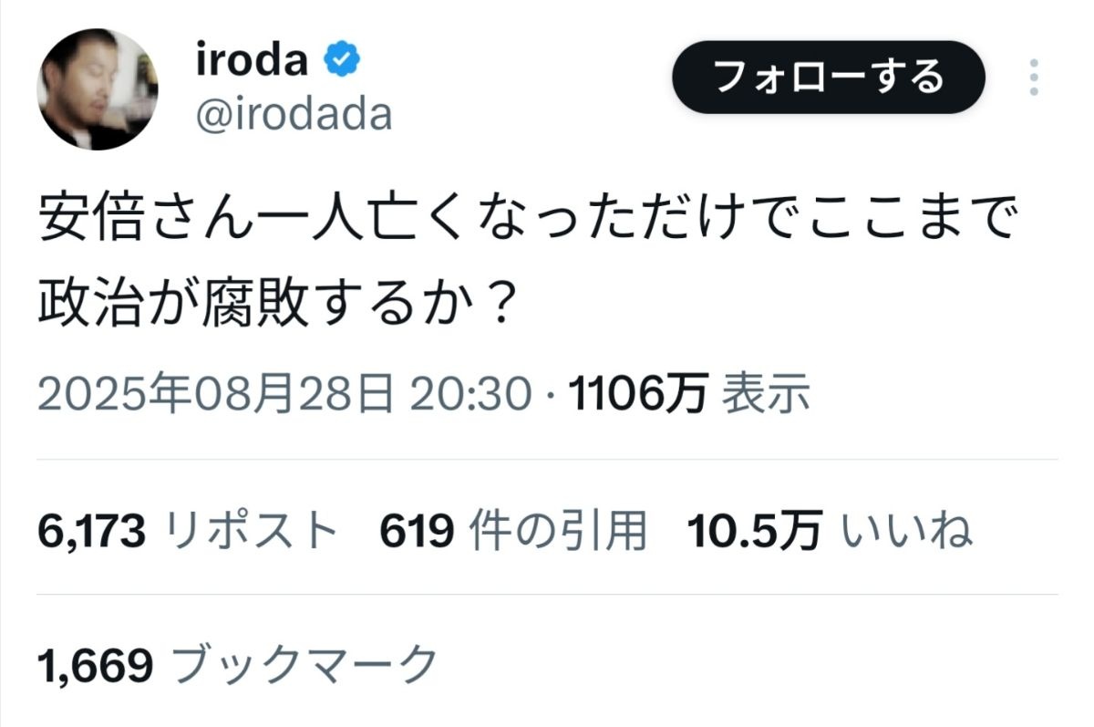 日本人の発想は安倍が居なくなったら政治腐敗が酷くなった…