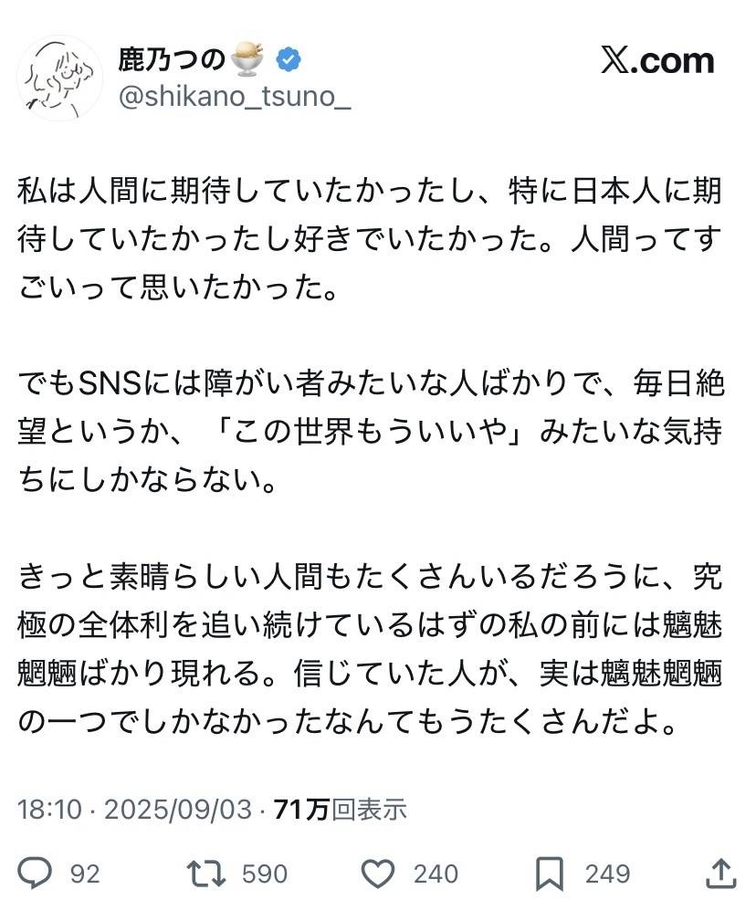 サラッと障がい者差別しててこえーよ