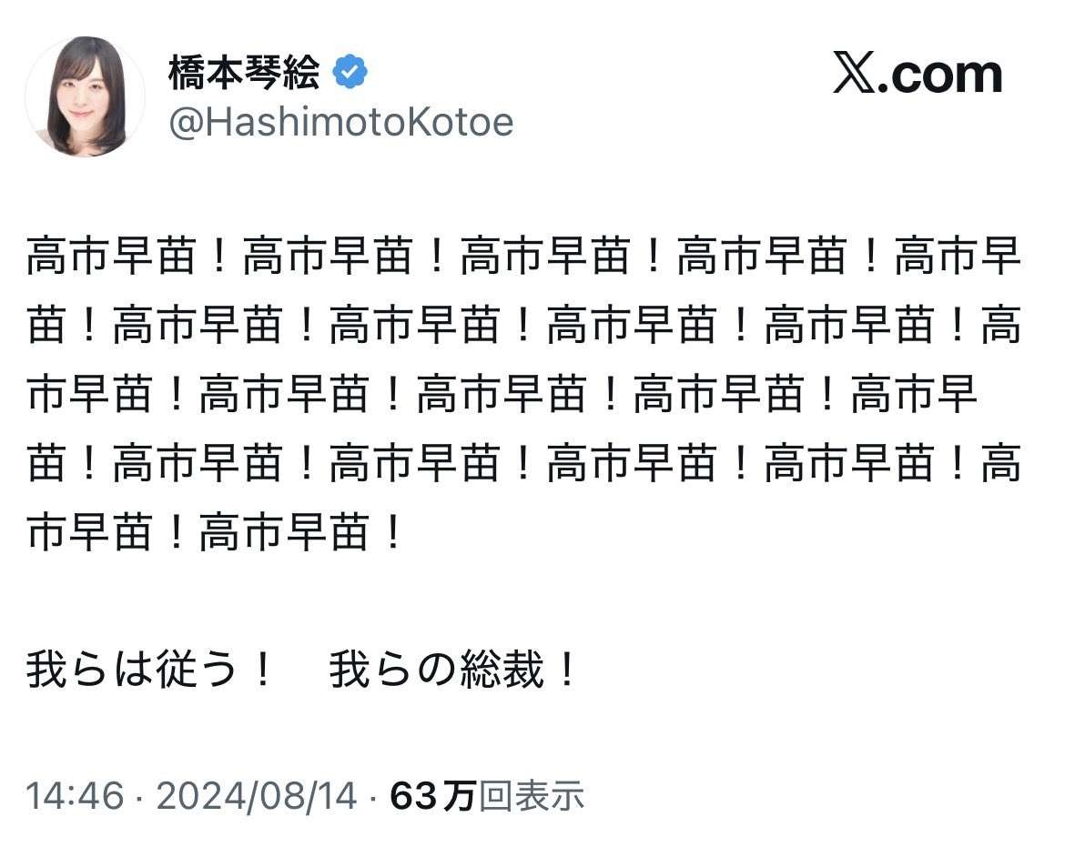 まあ、そういう熱烈な支持者がいるのは事実なんだろうな。政治家の発言って色々な受け止め方があるから、賛同する人もいれば、そうでない人もいるってことだろ。 『ウヨ/高市』に反応し、加速スクリプトが起動を成立。 BE[165981677]はこれまでに101スレッドで3625レスのscriptを発生。