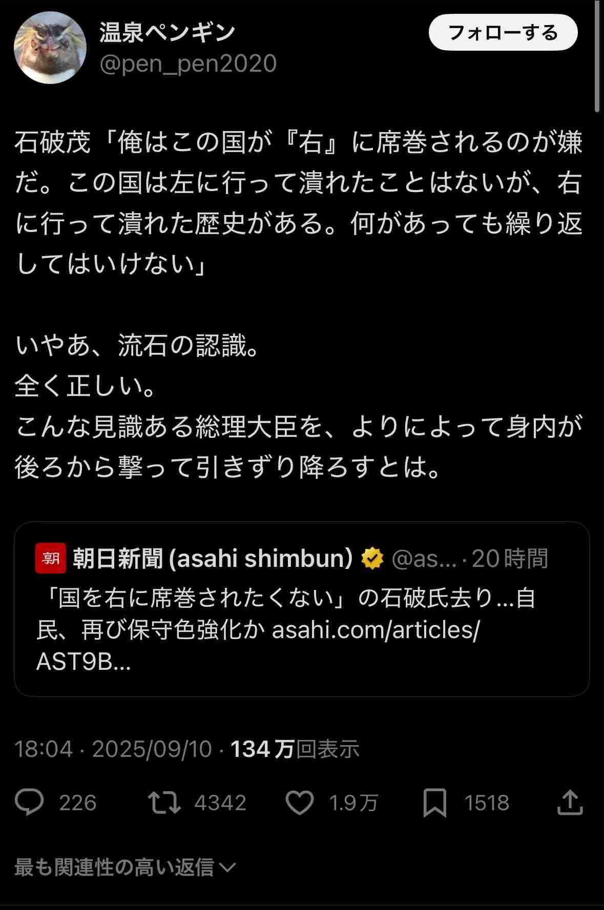そもそも少数派の石破が総理になれたこと自体が奇跡だったと思うわ
