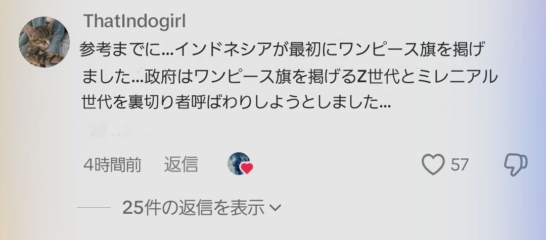 麦わらの海賊旗を使って抗議活動を始めたのはインドネシアが先