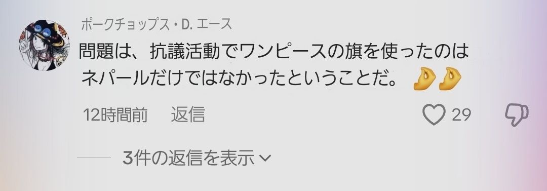 ネパール発のワンピース革命、マジで世界に広まってるみたいで面白いな。どんな影響が出るか楽しみだぜ。