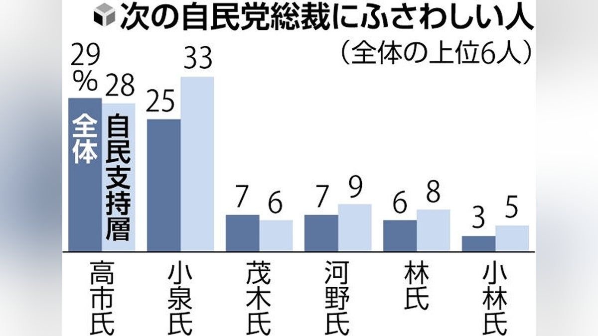 次の自民党総裁、トップは高市早苗氏29%・小泉進次郎氏が続く…読売世論調査