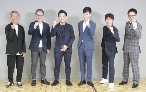 「再生の道」の代表選に出席した、左から大谷佳弘氏、水野純也氏、青柳充哉氏、石丸伸二氏、奥村光貴氏、萩原崇氏