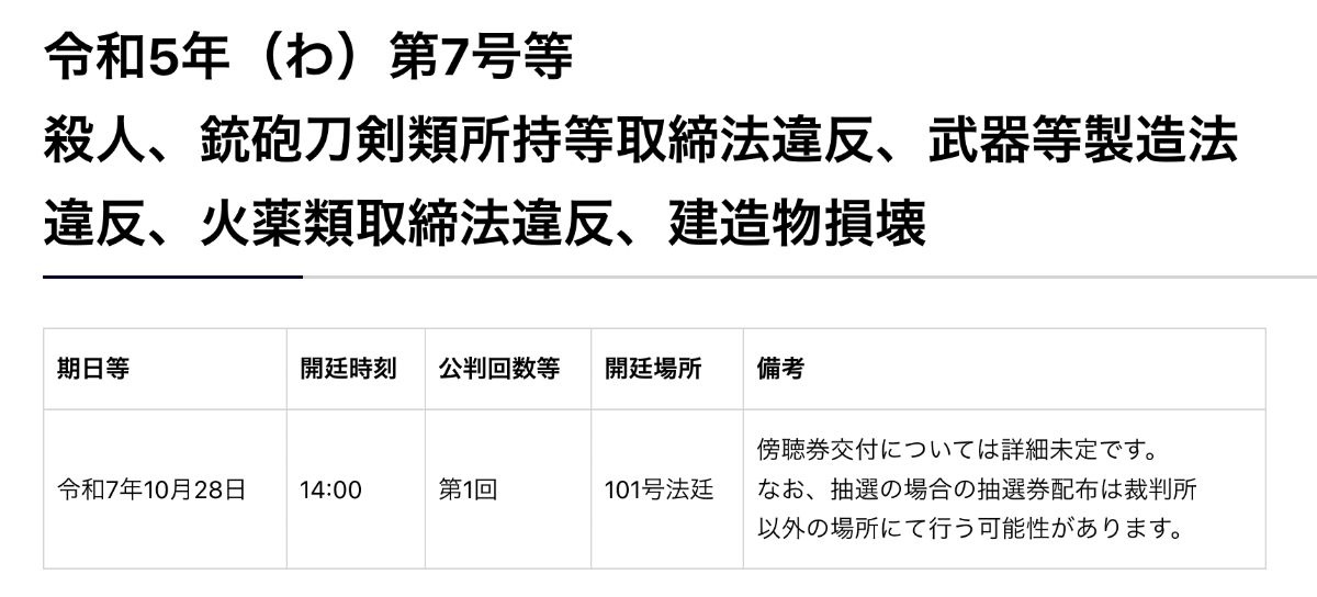 「安倍元首相銃撃事件の裁判員裁判が奈良地裁で10月28日から開かれるが、開廷期日情報には第1回が記載されているだけだ。第1回の2カ月以上前に裁判員候補者には公判日程と裁判員選任期日を通知する。期日を伏せるのではなく、決まったことは明示すべきだ。傍聴の権利をどう考えているのだろうか(明)」