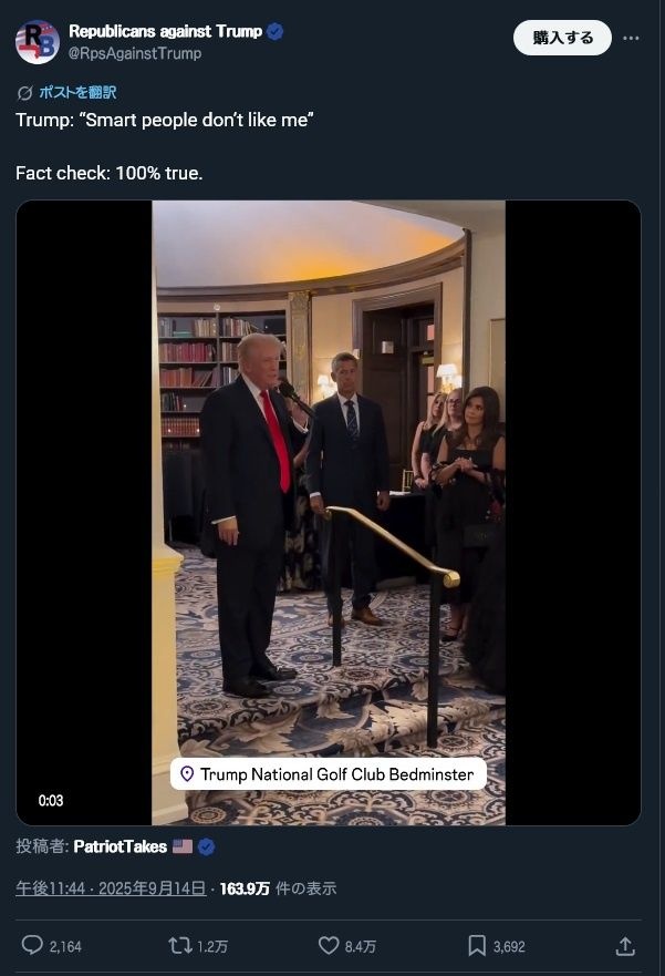 驚いたのは、ドナルド・トランプ氏が今日、文字通り「彼を好きじゃない」と言ったことです。つまり、彼の支持者、あるいは「教育を受けていないバカな人たち」のことです。…そして、MAGAの誰一人として何も言いませんでした。