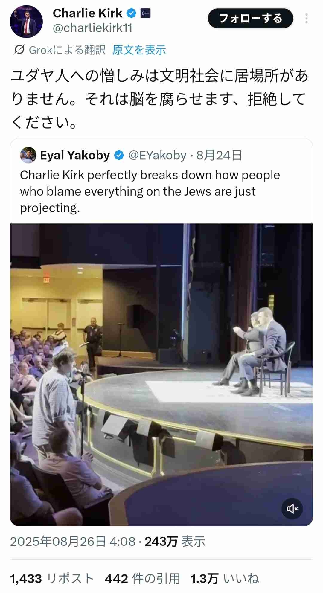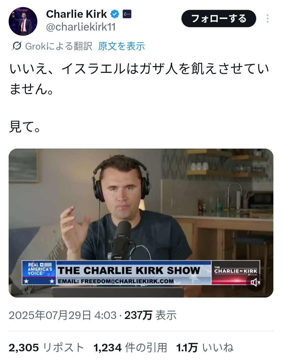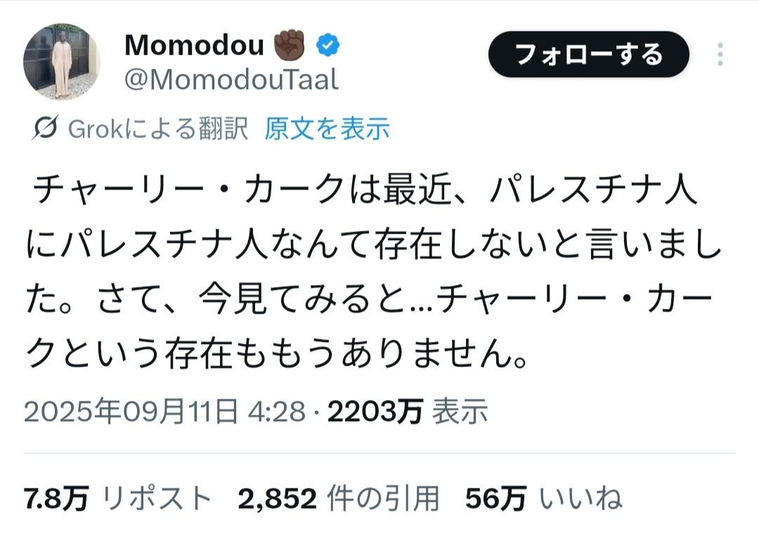 トランプ「ありがとうイスラエル。ありがとうチャーリー・カーク」