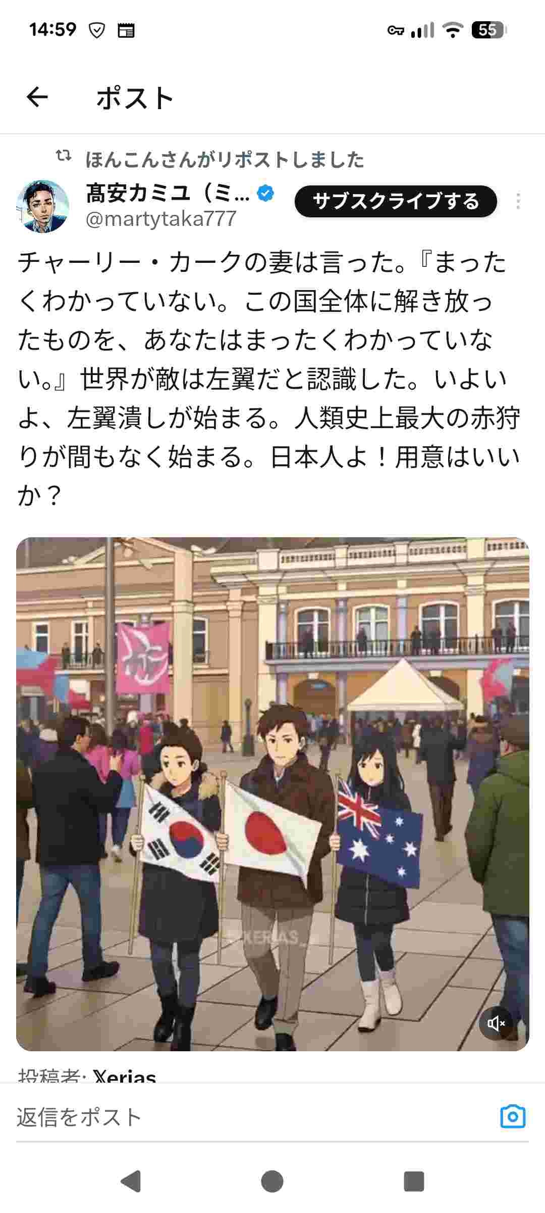 ほんこん さん「世界は右翼が征する。左翼潰しが始まる。人類史上最大の赤狩りが間もなく始まる。日本人よ!用意はいいか?」